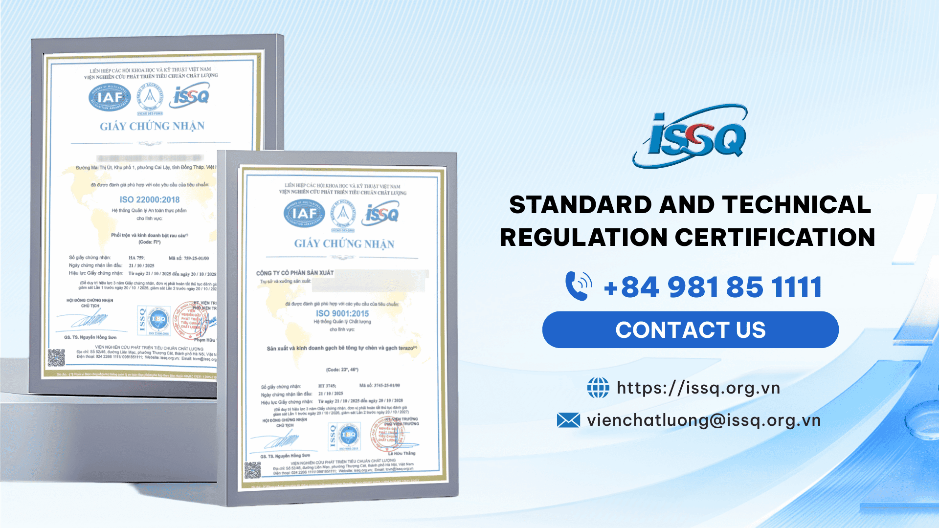 The Institute for Research and Development of Standards and Quality (ISSQ Institute of Quality) would like to extend its respectful greetings to you. The ISSQ Institute of Quality is responsible for providing specific scientific and technological services such as: