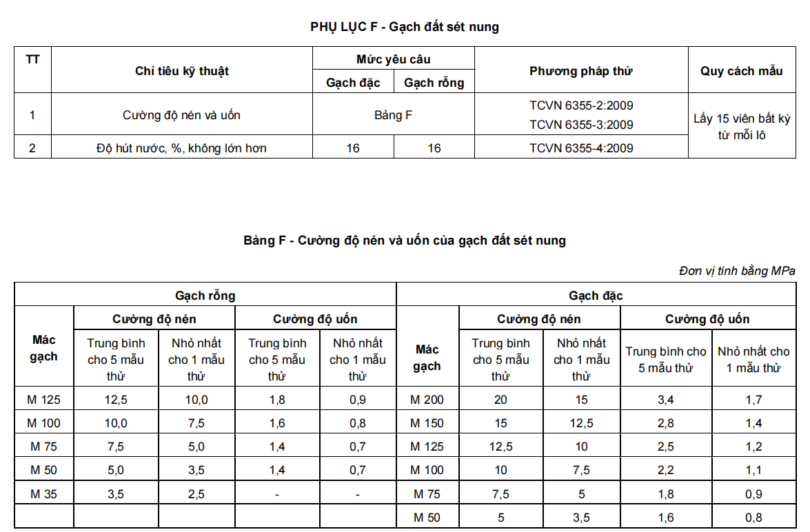Quy chuẩn QCVN 16 quy định gạch đất sét nung cần đáp ứng các chỉ tiêu kỹ thuật sau:
