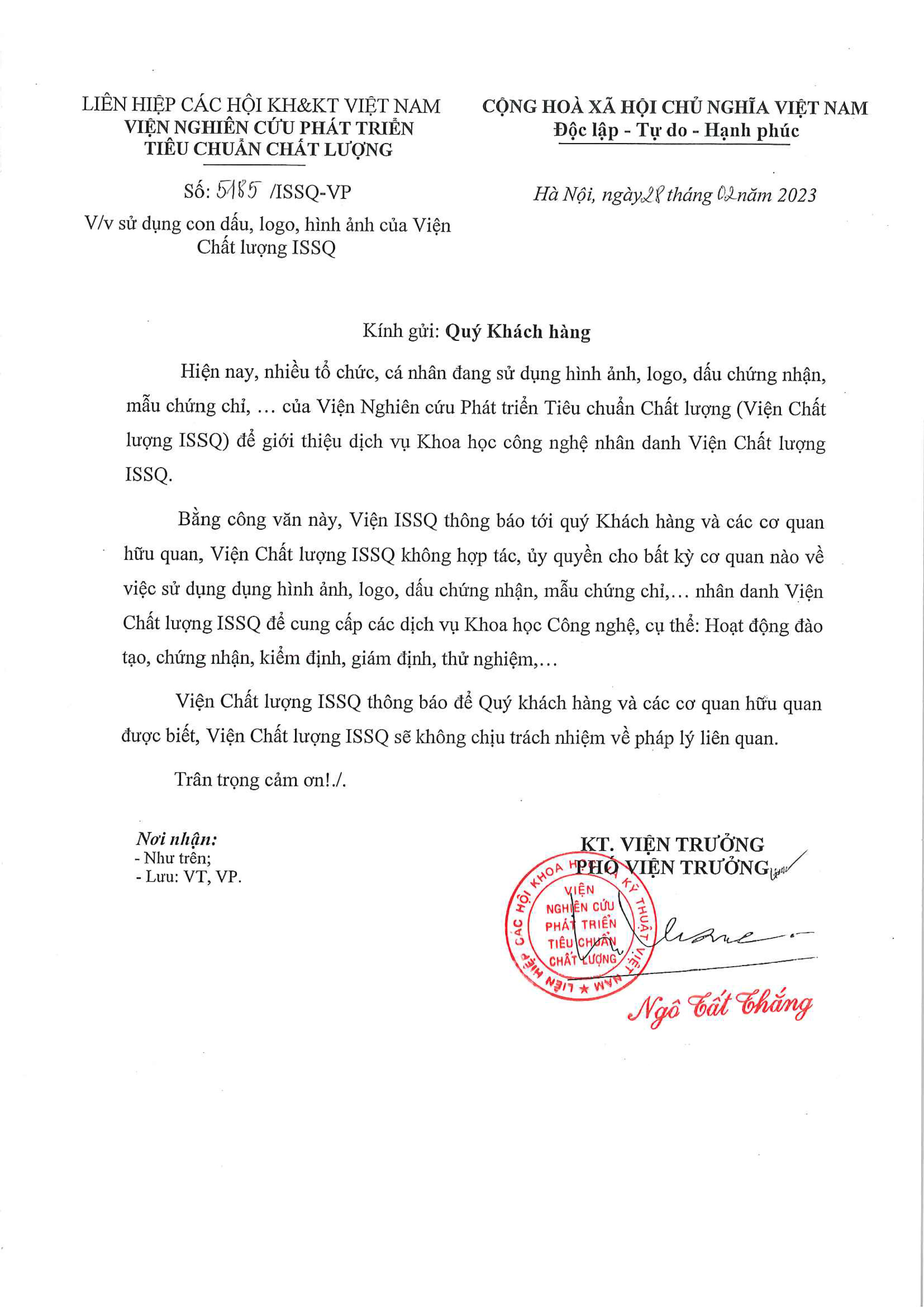 Viện Chất Lượng ISSQ thông báo về việc sử dụng hình ảnh logo, dấu chứng nhận của Viện.