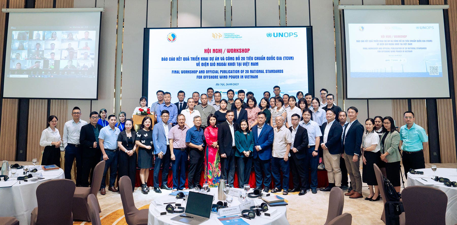 Ngày 26/9/2025 tại Hà Nội, được sự chấp thuận và hỗ trợ của Văn phòng Dịch vụ Dự án thuộc Liên Hợp Quốc (UNOPS), Quỹ Đối tác Chuyển dịch Năng lượng Đông Nam Á (ETP) và Uỷ ban Tiêu chuẩn Đo lường Chất lượng Quốc gia (STAMEQ) và các thành viên Liên danh tư vấn gồm: Viện Nghiên cứu Phát triển Tiêu chuẩn Chất lượng (ISSQ); Công ty TNHH Pondera Việt Nam (thuộc tập đoàn Royal HaskoningDHV); Trung tâm Quy hoạch và Điều tra Tài nguyên nước quốc gia (Nawapi); Công ty Cổ phần Tư vấn Xây dựng Điện 1 (PECC1) tổ chức Hội nghị báo cáo kết quả triển khai dự án và công bố 20 Tiêu chuẩn quốc gia (TCVN) về điện gió ngoài khơi tại Việt Nam.