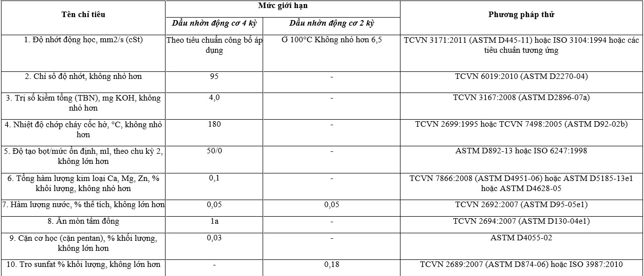 Dầu nhờn động cơ đốt trong thử nghiệm phù hợp theo QCVN 14:2018/BKHCN