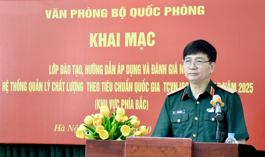 Phát biểu khai mạc lớp đào tạo, Thiếu tướng Lê Văn Dũng, Phó chánh Văn phòng Bộ Quốc phòng (BQP) cho biết: Thời gian qua, BQP rất quan tâm, coi trọng thúc đẩy việc áp dụng Hệ thống quản lý chất lượng theo tiêu chuẩn ISO trong giải quyết thủ tục hành chính và công việc nội bộ tại các cơ quan, đơn vị, góp phần nâng cao hiệu quả trong thực hiện các mục tiêu cải cách hành chính, tạo sự nhất quán trong công việc, chuẩn hóa các quy trình hoạt động, xử lý nghiệp vụ, cắt giảm các thủ tục không cần thiết và cải tiến phương pháp làm việc. Đến nay, BQP đã triển khai áp dụng Hệ thống quản lý chất lượng đối với 626 cơ quan, đơn vị trong toàn quân.