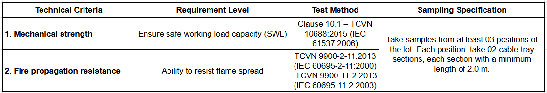 为加强质量管理并对部分技术特性提出限值要求,QCVN 16:2023/BXD 已将用于建筑电气安装的铁质或钢制电缆桥架系统纳入受监管产品目录。因此,根据该法规,电缆桥架系统在投放市场前必须进行合格认证并完成合格声明。